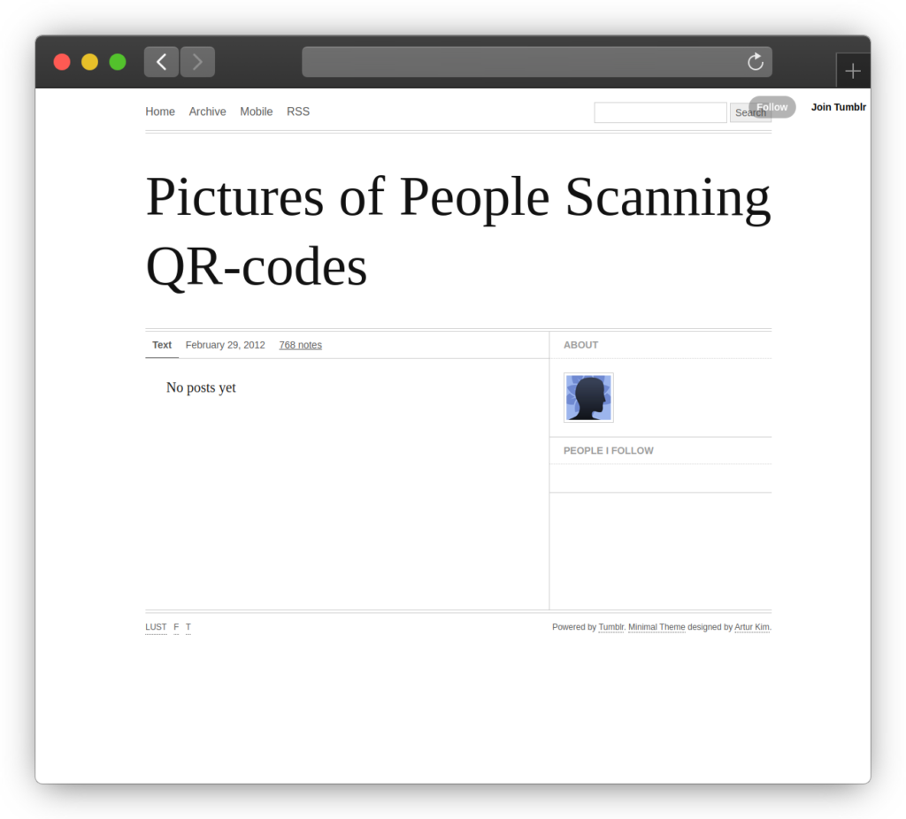 QR codes took a long time to catch on. For years they were a punchline. There was a blog called “Pictures of People Scanning QR Codes” and the joke was that it had no posts. Marketers put them on everything, nobody scanned them, and the whole thing felt like a technology waiting for a use case that would never arrive.
